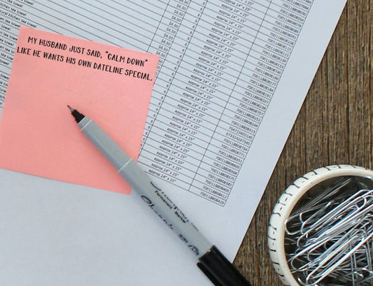 My husband wants his own Dateline special | sticky note pads