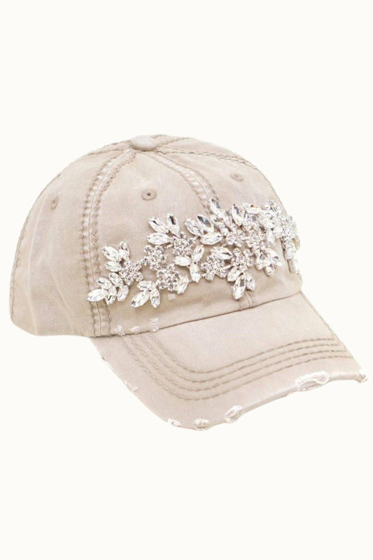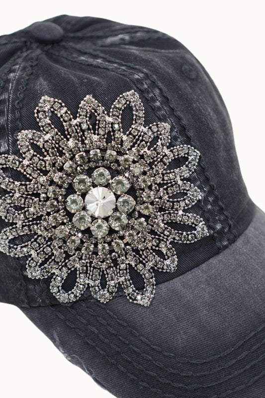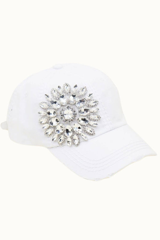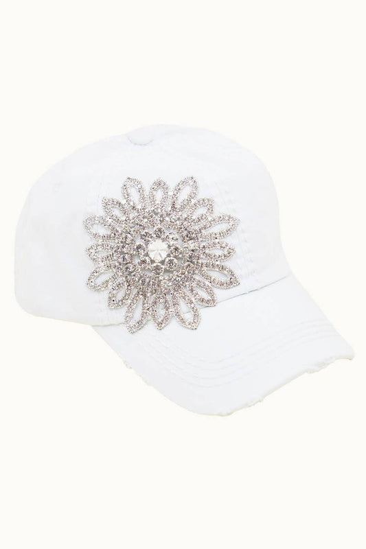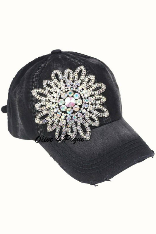 Sunflower Bejeweled Glitz Distressed Cap, Adjustable