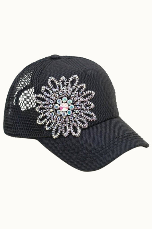 Sunflower Bejeweled Glitz Trucker Cap, Adjustable