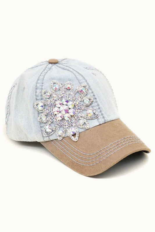 Sunflower Bejeweled Glitz Two-Toned Cap, Adjustable