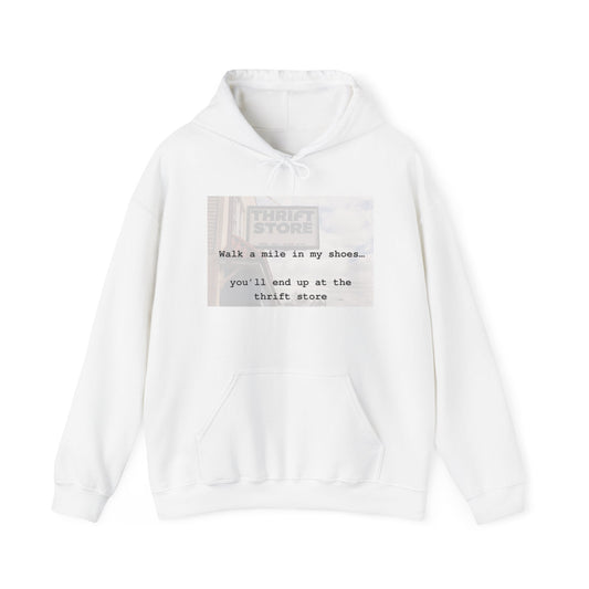 Walk a mile in my shoes…you’ll end up at the thrift store! Hooded Sweatshirt, Light Pink,