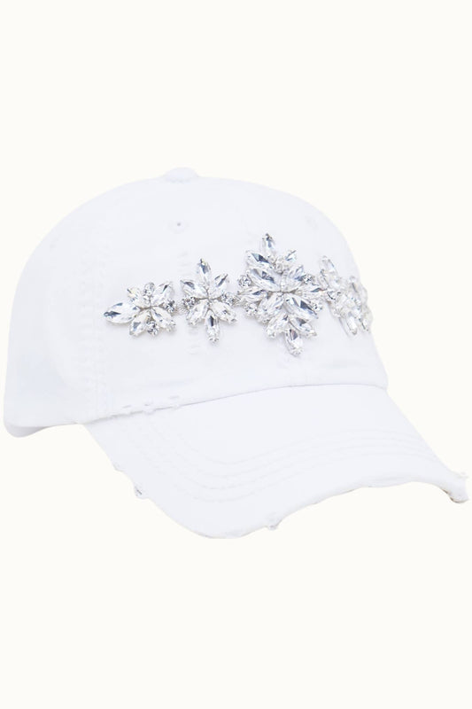 Bejeweled Bling Glitz Distressed Cap, Adjustable