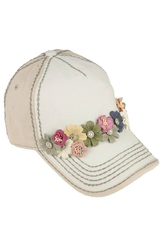 Floral Bejeweled Bling Glitz Cap, Adjustable