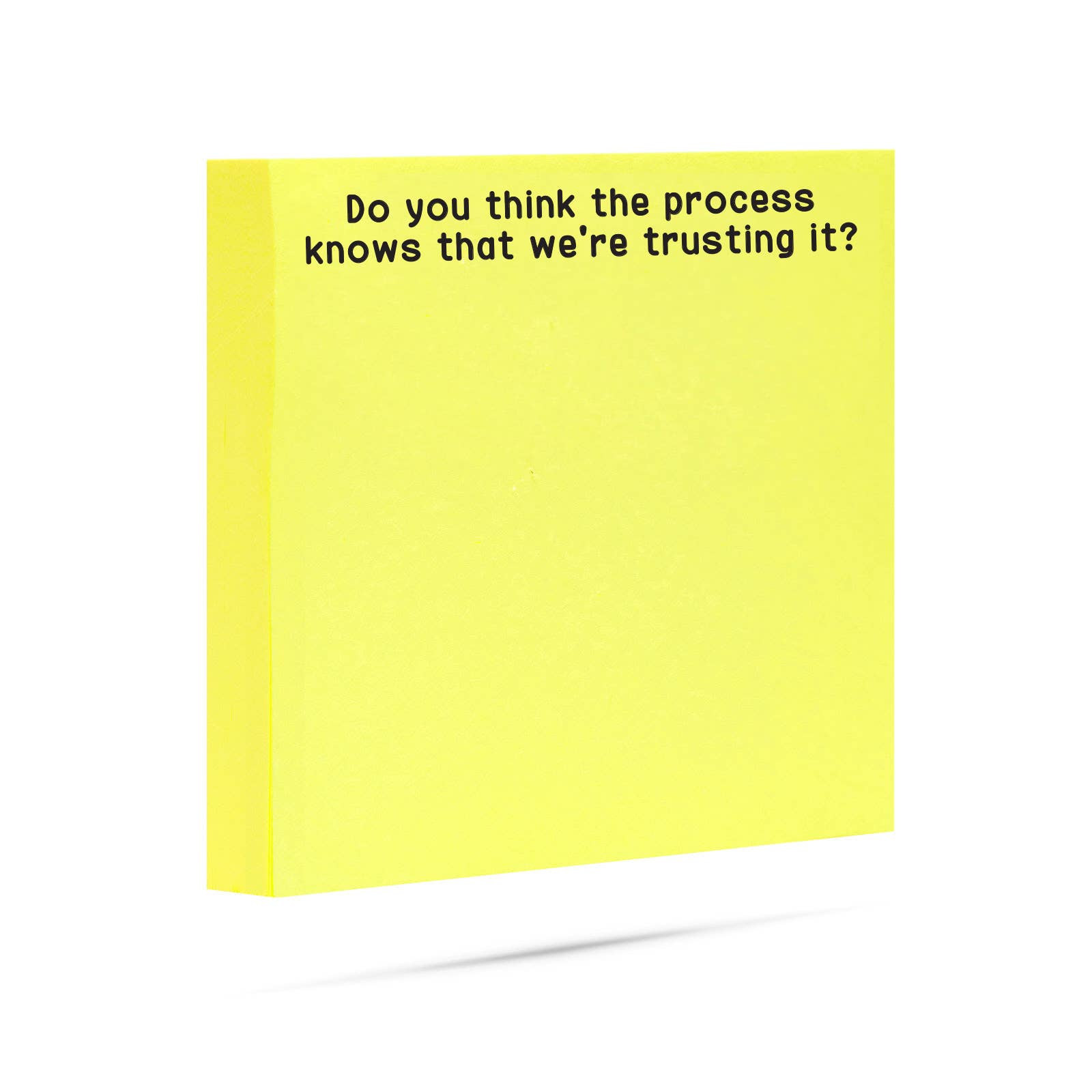 KEYWORDS: Do you think the process knows that we're trusting it, sticky notepad, funny sticky notes, post it notes, post its, funny stationery, ellembee, female owned companies, best selling sticky notes, little note pads, office products, stocking stuffers under $5, elenbee, ellenbee, lmb, lnb, neon yellow, bright yellow paper, office supplies, office humor, office gifts