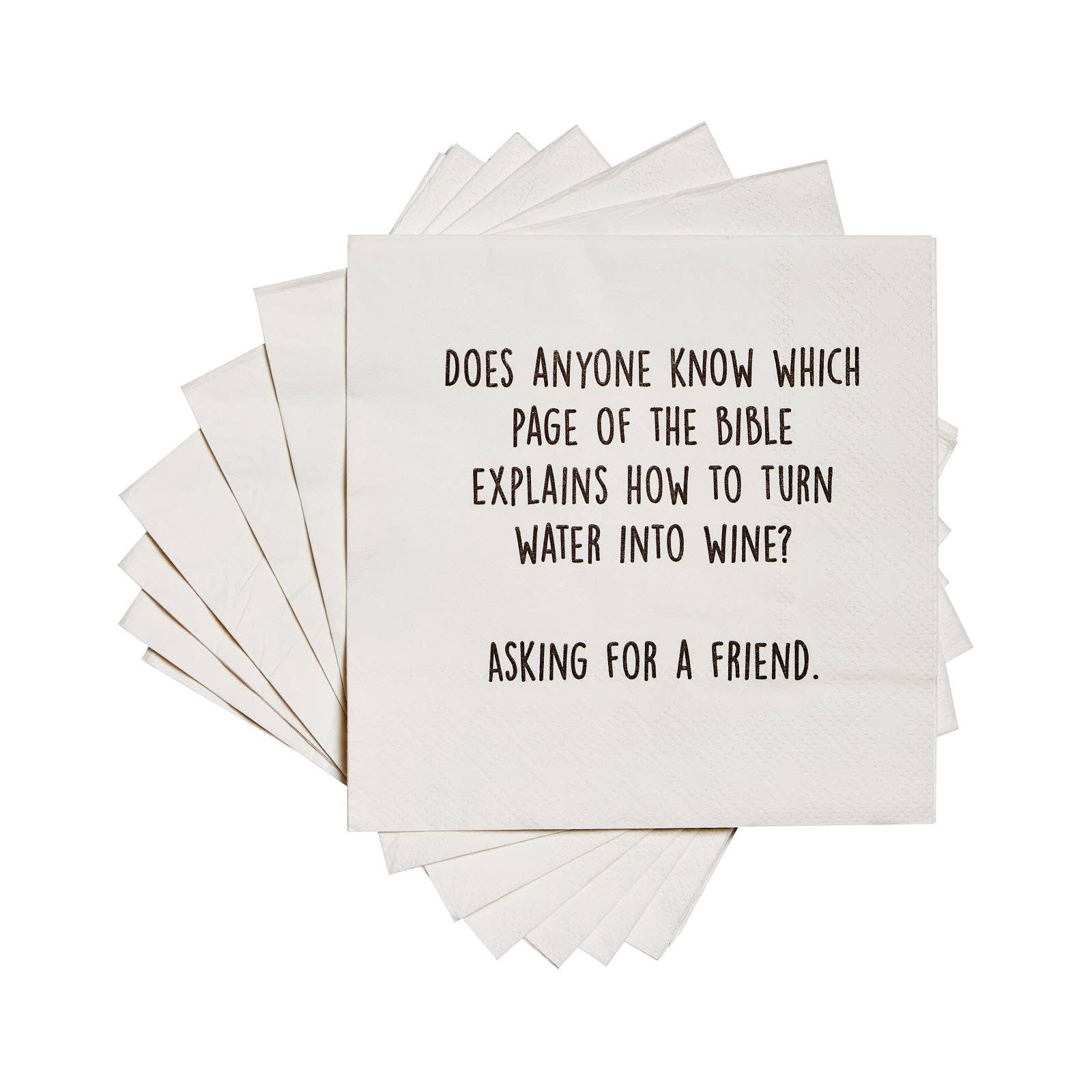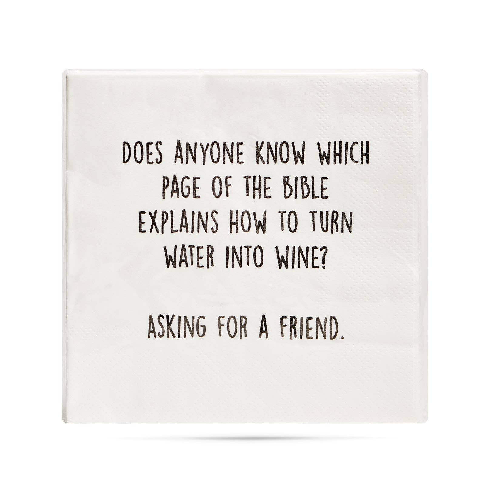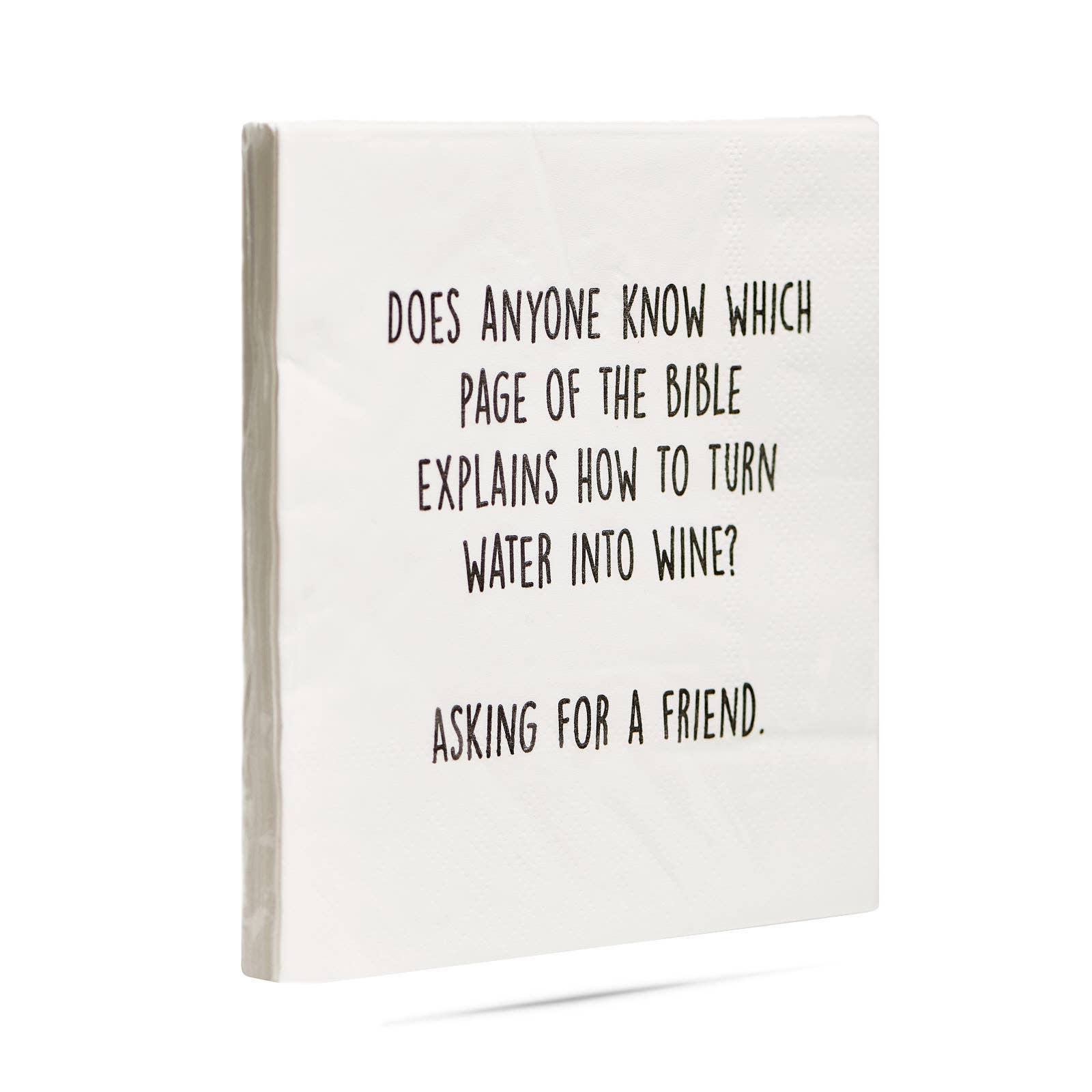KEYWORDS: Does anyone know which page of the bible explains how to turn water into wine asking for a friend, drinks, sunday, sunday funday, cocktailing, drinking with friends, girls night, hostess gifts, hosting parties, kitchen gifts for entertaining, kitchen accessories, bar decor, entertaining, bff gifts, funny cocktail napkins, girls night, bestie gifts, printed napkins, napkins, funny sayings, snarky gifts, best birthday gifts, gifts for coworkers, disposable napkins, sassy napkins, snarky napkins