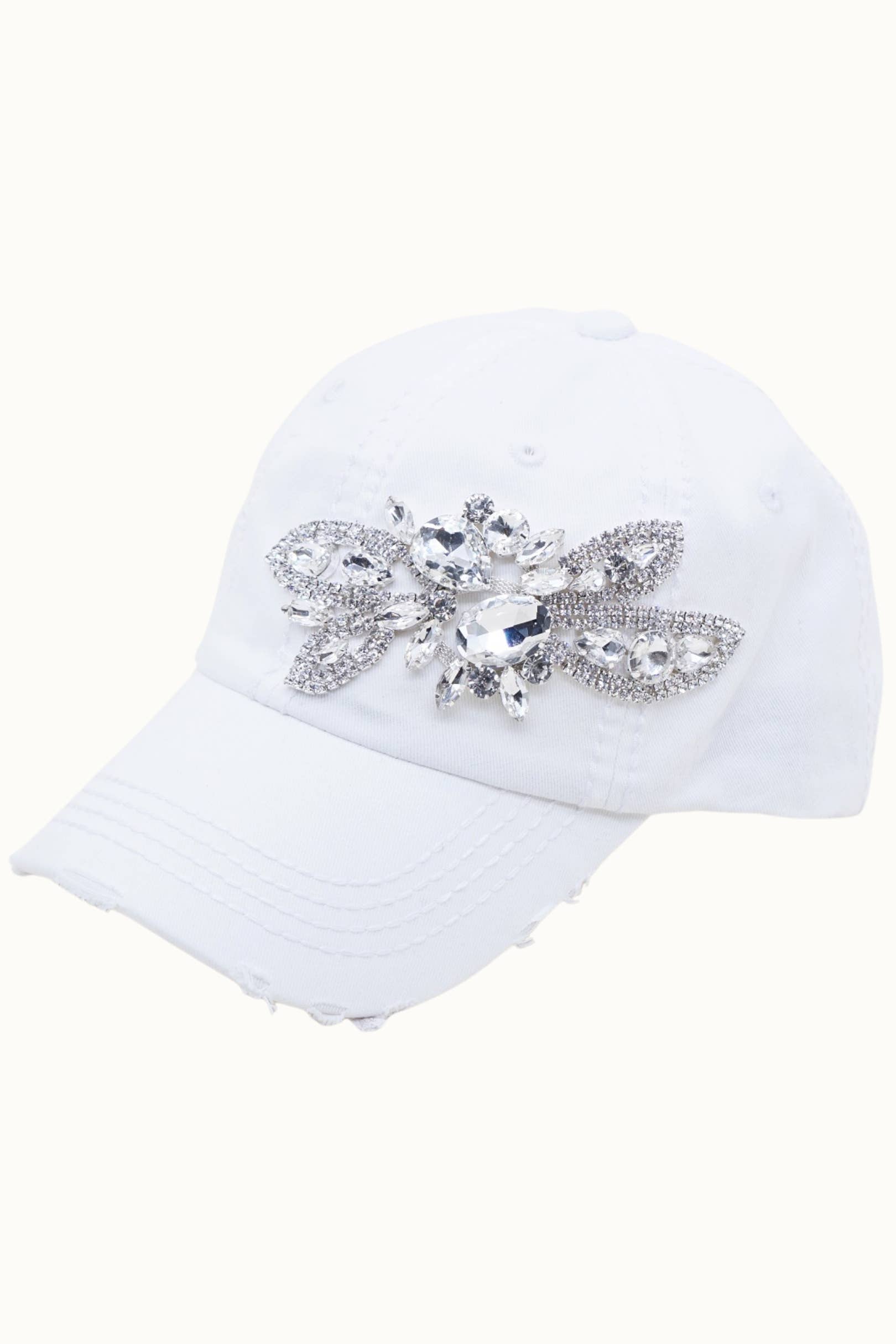 Floral Bejeweled Bling Glitz Cap, Adjustable