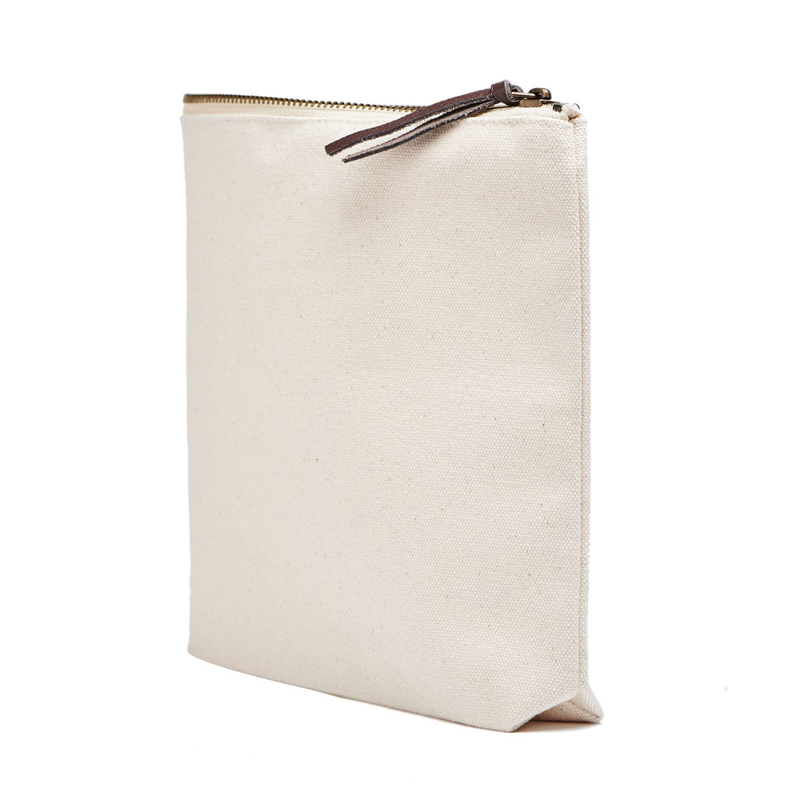 Our new everyday bags are large and luxurious! They're made of 100% durable cotton canvas, with a gold zipper and leather zipper pull. They have a gusseted bottom, and at 9" wide by 7" tall, they're significantly bigger than our zipper pouches, and have a high-end feel.